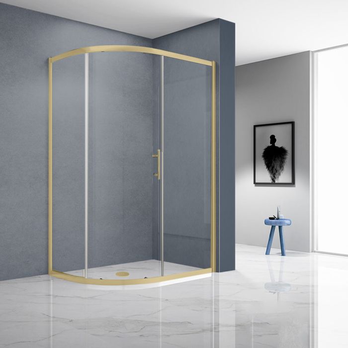 With its unique brushed brass profile, smooth curves and ample interior this gorgeous shower enclosure with its quadrant shape brings a feeling of luxury to your showering experience. Manufactured from high quality materials and built to last - and supplied with a lifetime manufacturers guarantee for complete piece of mind