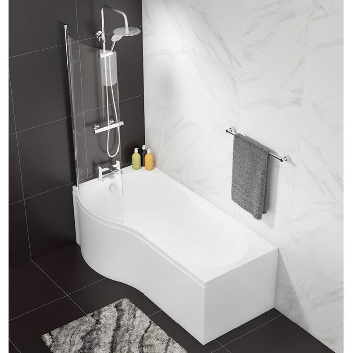 The Aqua i P Shaped Bath Screen features 6mm toughened safety glass and 10mm adjustment for out of true walls and is a great value option to complete your P shaped bath installation and shield the bathroom from splashes.Â