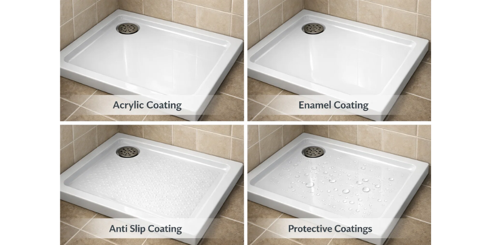 Primarily focusing on safety and comfort, textured shower trays use moulded patterns or coatings to reduce slip risk. These surfaces assist water dispersion, improving drainage performance during daily shower use. Textured finishes support anti-slip shower tray coating systems designed to improve grip without discomfort.