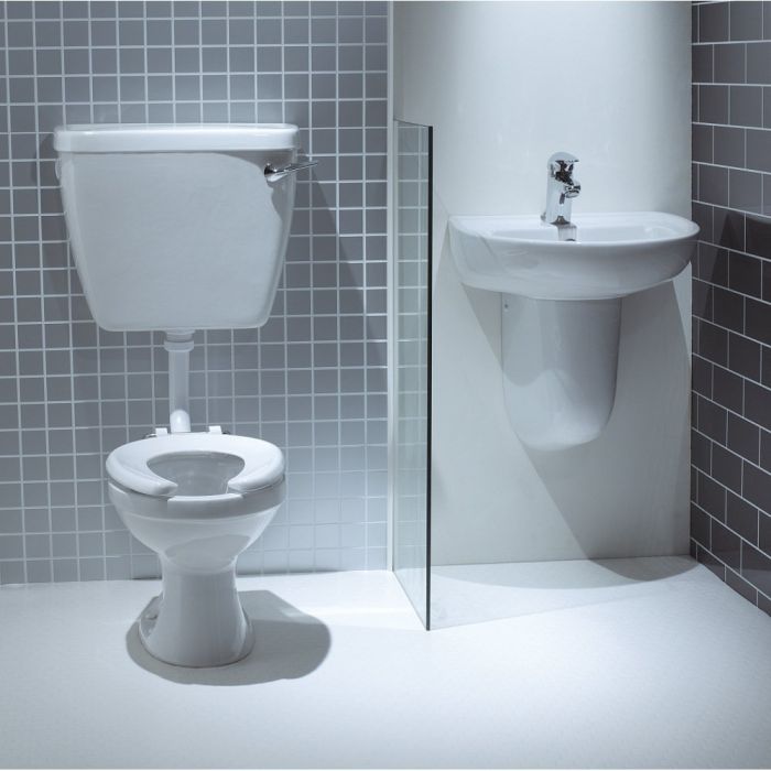 Designed for school and early year settings with high traffic environments. Includes low level lever cistern and heavy duty open ring toilet seat.