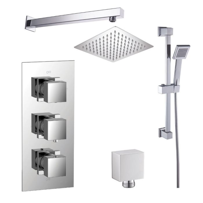 ✔ Chrome finish ✔ Includes fixed head ✔ Choice of shower arm ✔ Multi function handset ✔ Thermostatic cartridge
