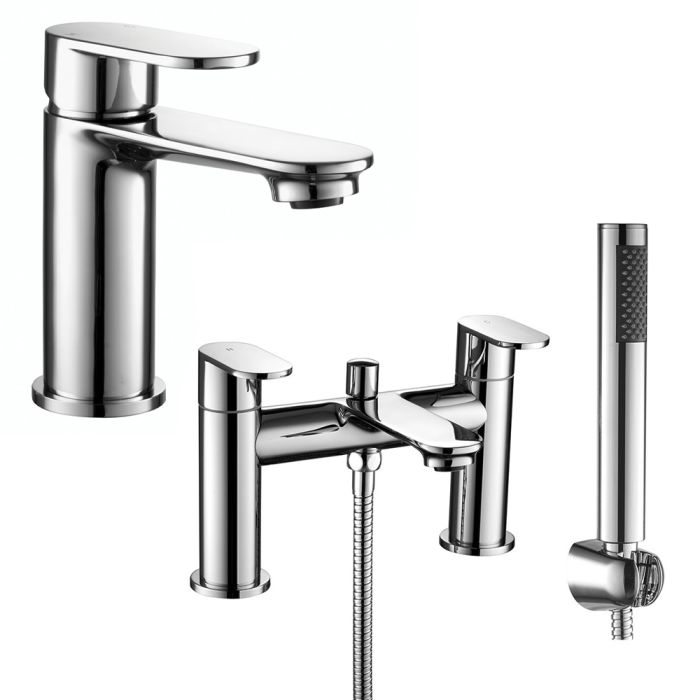 Noveua Preston Basin Mixer & Push Button Waste & Bath Shower Mixer Tap Set - Chrome